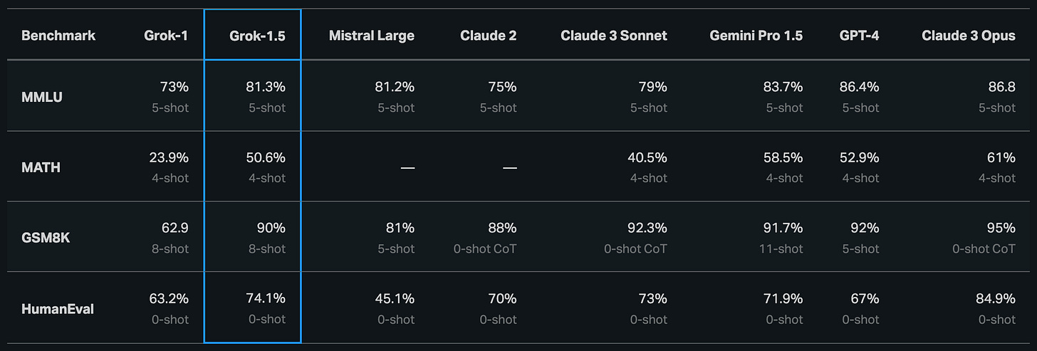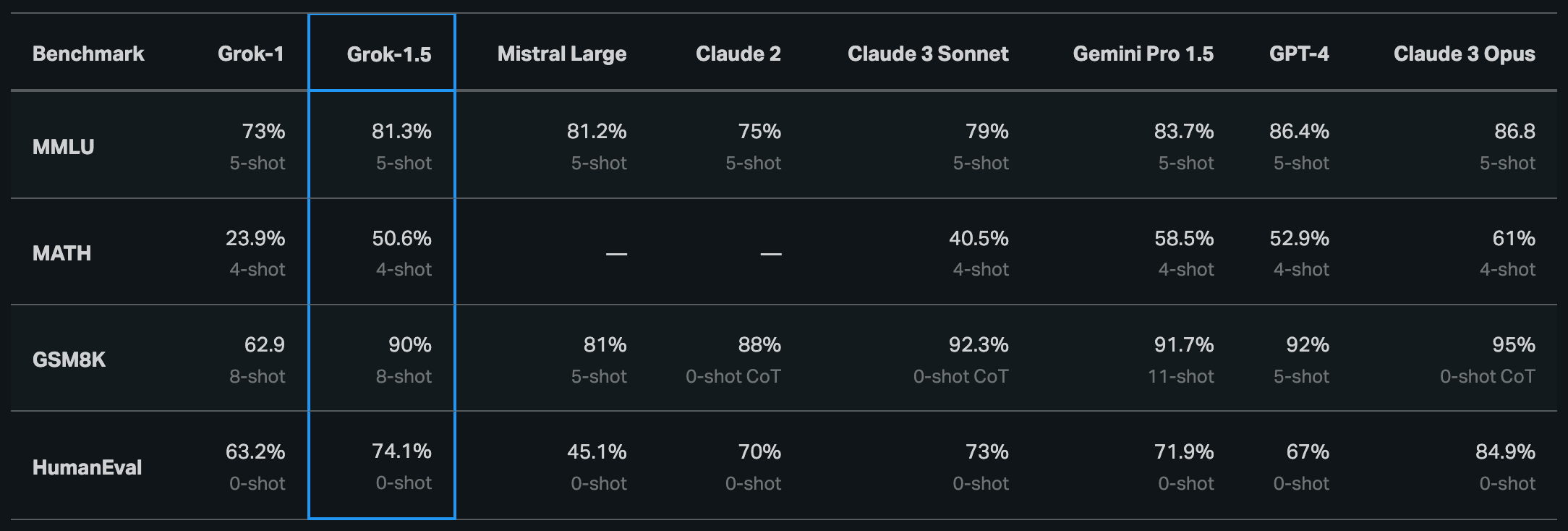 xAI 的開源模型超英趕美:Grok-1 → Grok-1.5
