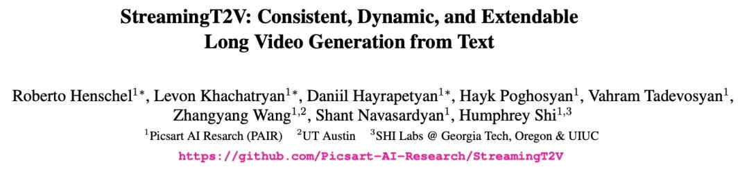 相信 OpenAI 的 Sora 是許多人期待的下一個 AI 里程碑,從 Pika、Runway 數秒鐘的影片到 60 秒的 Sora;StreamingT2 能夠生成 120 秒(甚至理論上更長)的影片,並且達到一致且流暢的影片。